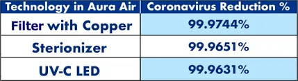 More specifically, recent clinical trials conducted in a hospital setting have demonstrated the effectiveness of Aura Smart Air’s combination of three filter technologies individually against airborne coronavirus with producing the following results: